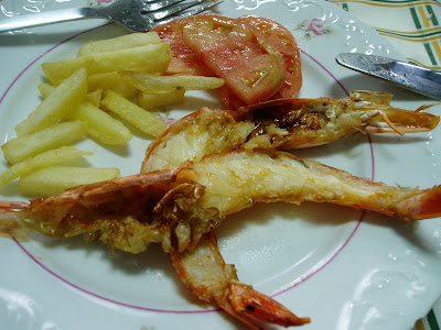 A mesma pessoa que ofereceu a carne de javali, na semana seguinte, apareceu aqui com uma caixa enorme de camarões de moçambique. Os bixos são enormes! Não pensem que a pessoa também cria camarões caseiros e depois oferece (era bom era!). Ela tinha umas caixas na arca congeladora que já estavam quase a terminar prazo e, como sabe que eu gosto de cozinhar, achou que eu faria um bom petisco com os bichinhos.