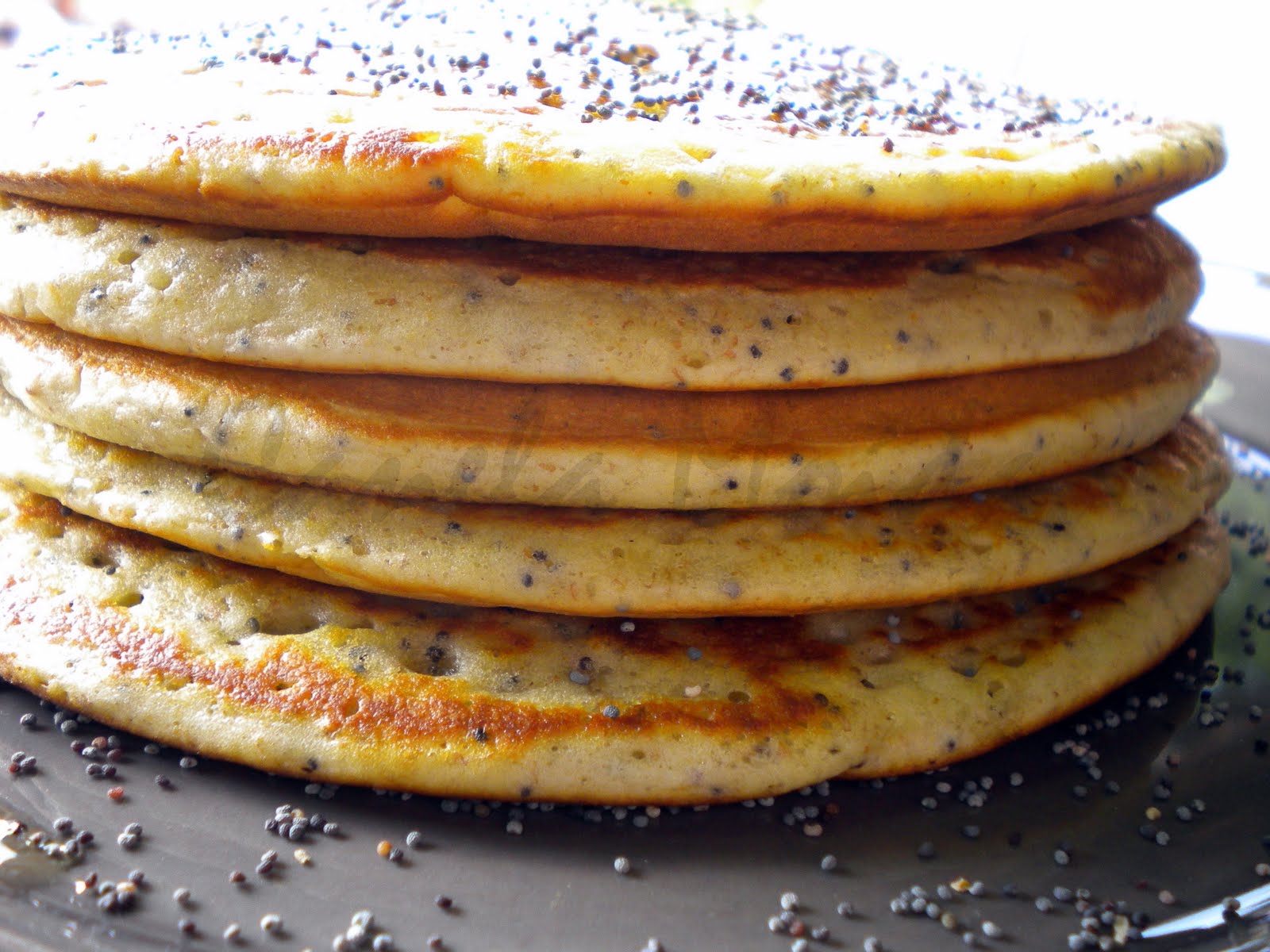 Aqueça uma frigideira, unte com um pouco de manteiga e coloque uma colherada de massa, deixe grelhar e volte-a qauando aparecerem pequenas bolhas na superfície. Deixe grelhar mais um minuto, retire, reseve em lugar quente e repita o processo até terminar a massa. Sirva quente regando com um pouco de xarope.